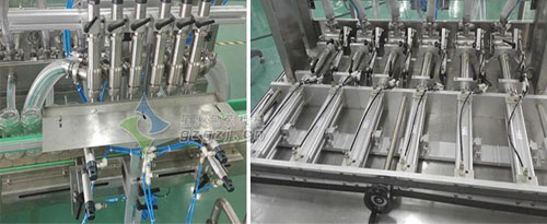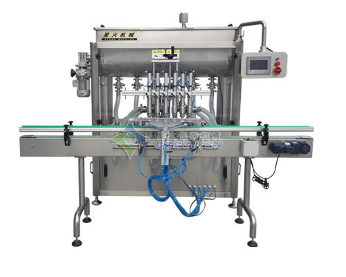 3、海鮮醬灌裝機-全自動海鮮醬灌裝機具有六個同步注脂灌裝頭,同步工作,效率高,醬料可均勻地被擠壓灌裝到容器里。