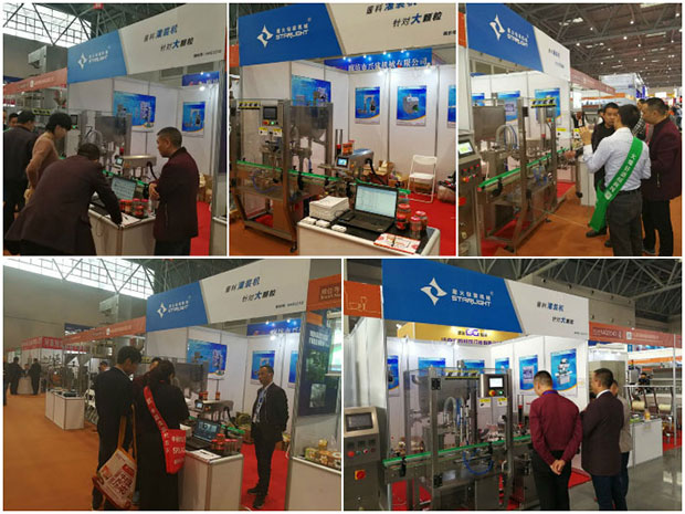 第97屆全國糖酒商品交易會(重慶全國糖酒會)將于2017-11-10至2017-11-12在重慶國際博覽中心舉行,2017秋季重慶全國糖酒會——中國酒水食品飲料行業的饕餮盛宴,已經圓滿結束!本屆糖酒會展區按葡萄酒及國際烈酒、酒類、食品飲料、食品、調味品、食品機械、包裝、廣告與媒介等類別進行專業分館、分區規劃。各大場館都是一片熱鬧非常,展位面前更是有絡繹不絕的人群,可謂現場是非常火爆!此次星火灌裝機也參加了次展會,本司展位設在了N4館,該館主要是食品機械以及調味品類商品展覽區。此次星火展覽的設備主要有雙頭醬料灌裝機以及真空旋蓋機,兩機可單shou使用又可連成生產線,實現瓶裝物料的生產,具有很高的自動化操作水平,對產品生產效率的提高有極大的意義!