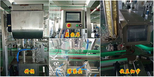 雙頭醬料灌裝真空旋蓋生產線細節展示: